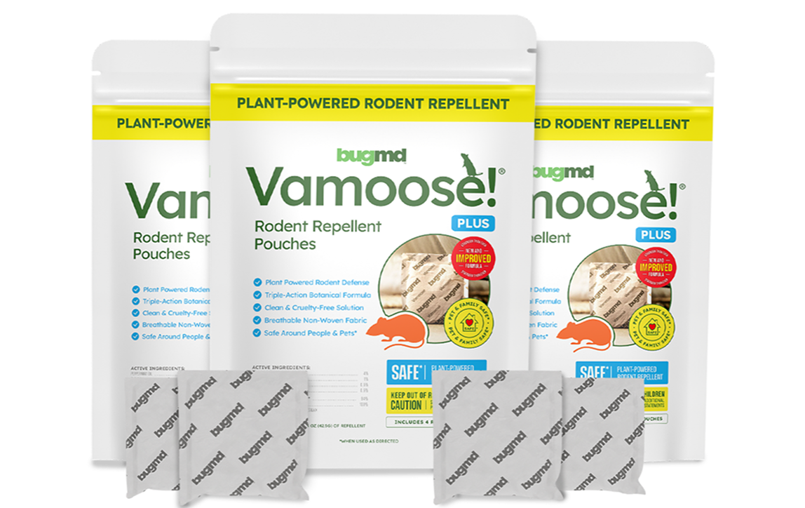Vamoose uses plant-powered essential oil pouches to create a scent barrier mice and rats avoid—without traps, poison, or dead rodents.