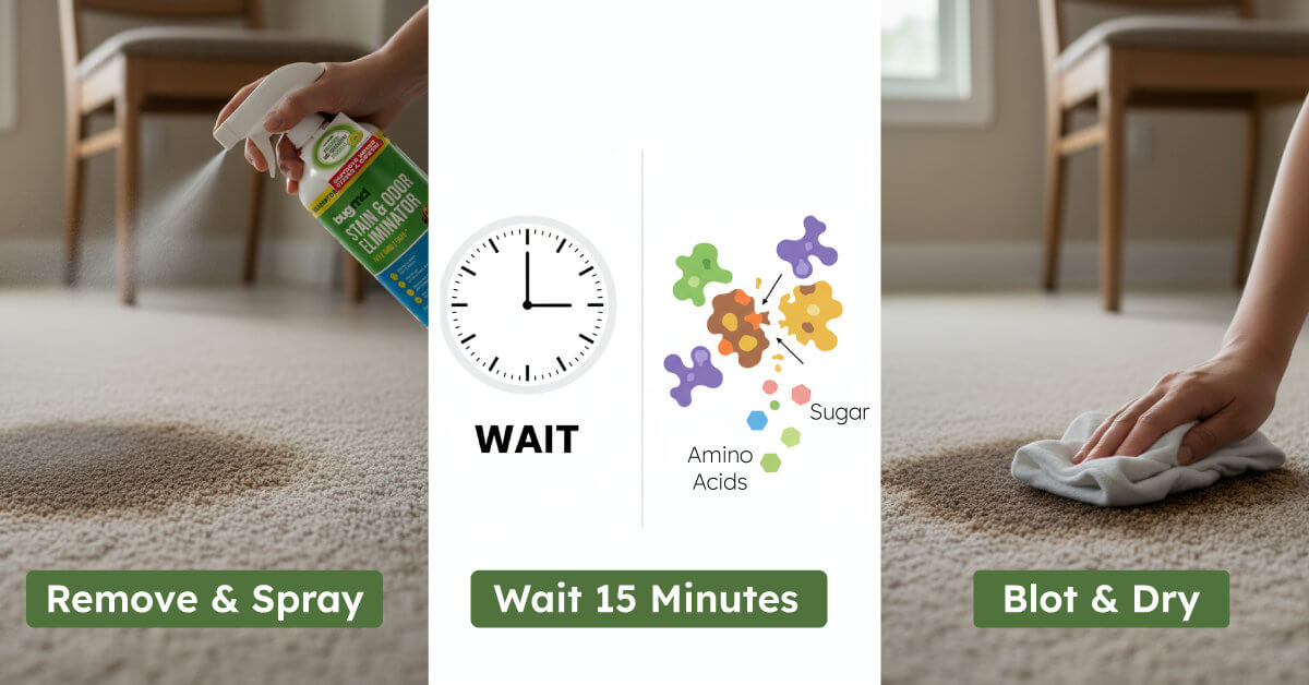 The professional-strength enzymes break down organic compounds like urine, feces, and vomit at the molecular level. Unlike cleaners that just mask odors, our enzymes eliminate the source by destroying the ammonia crystals and organic matter that cause both stains and smells.