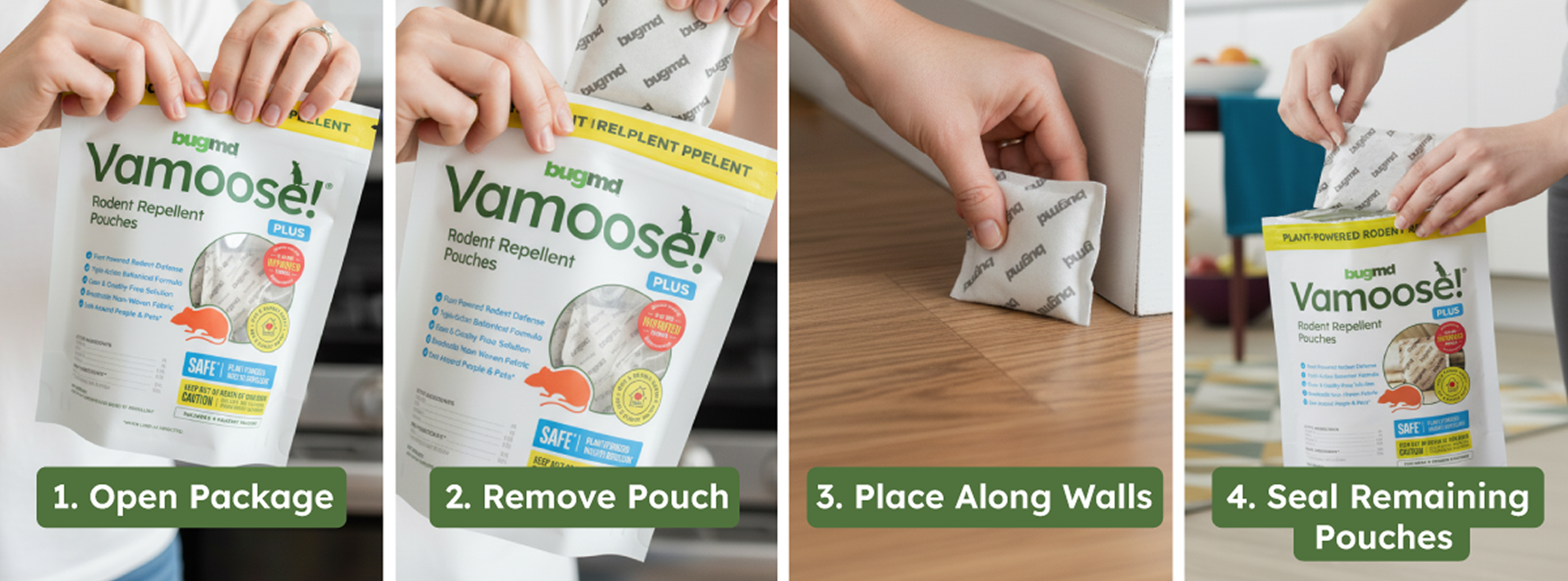 As you’re setting up your pouches, many customers realize they have a few extra things they want to take care of — whether it’s making sure they never run out of Vamoose, fully cleaning up old mouse activity, or preventing other pests from sneaking in.